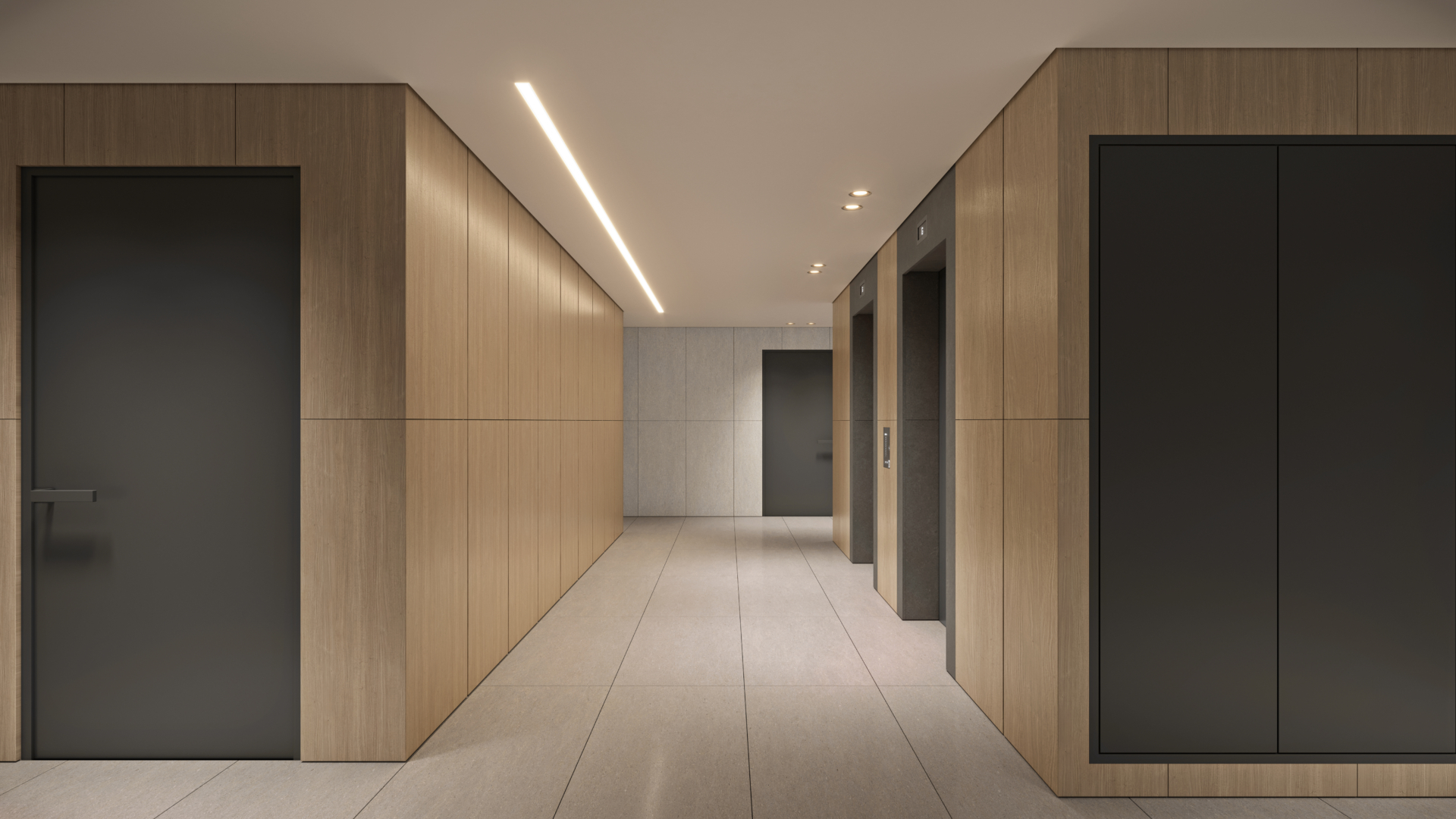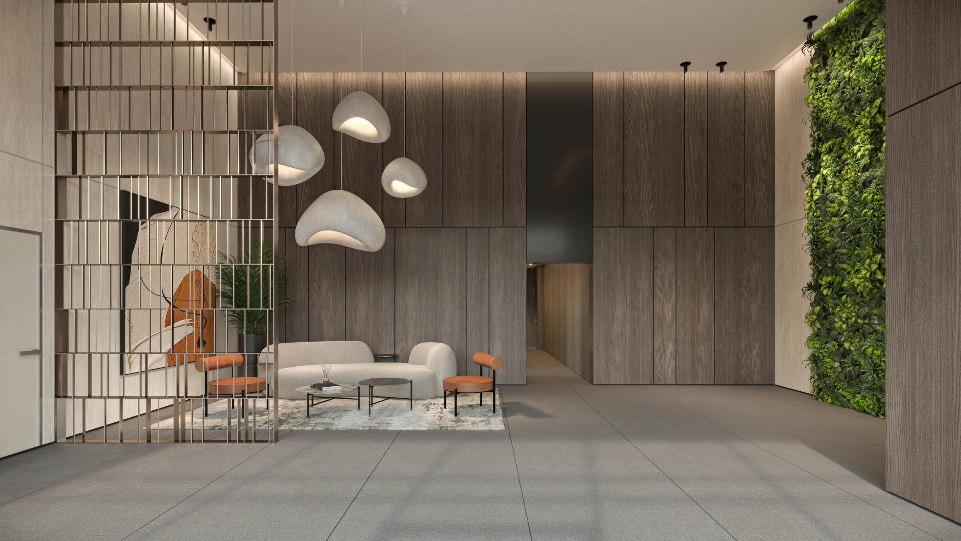 לובי מעוצב בקפידה משקף את האופי האדריכלי של הפרויקט, מעניק תחושת יוקרה מזוקקת ומרומם את ערך הנכס כולו – תדמיתית וכלכלית כאחד.